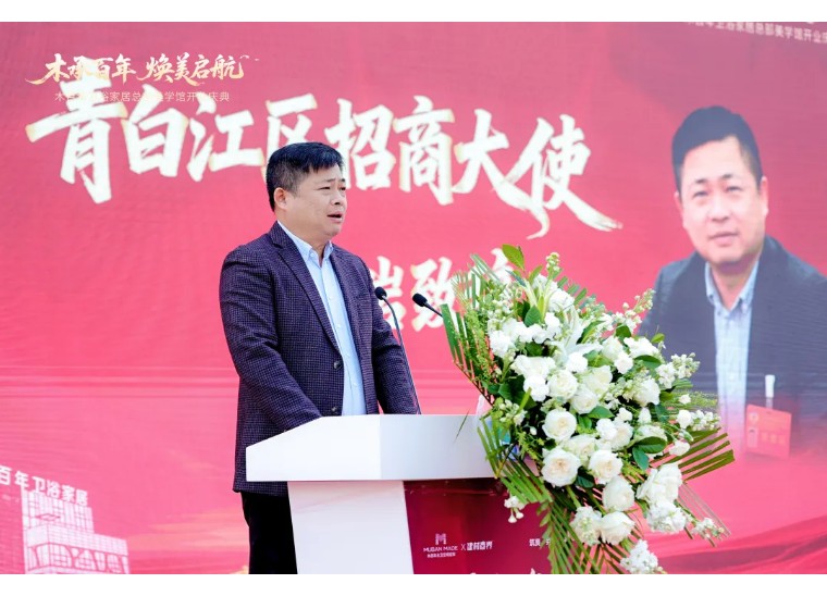 盛典在气势恢宏的开场鼓舞中正式启幕。青白江区招商大使、青白江新联会会长、绣川书院院长陈岩上台致辞,对木百年扎根青白江、赋能区域产业发展给予高度肯定与殷切期望。成都浴室柜协会会长刘开亮、义商联合会会长邓洪先后发表行业寄语,认可木百年在浴室柜领域的匠心坚守与创新引领,勉励品牌与行业共生共荣、协同发展。