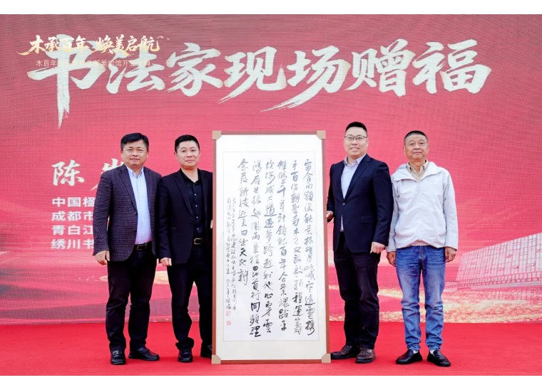 仪式现场,青白江新联会会长陈岩为木百年举行授牌暨墨宝赠福仪式,以文化厚礼赋能品牌发展。