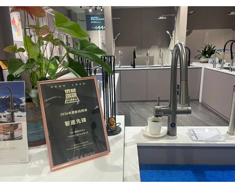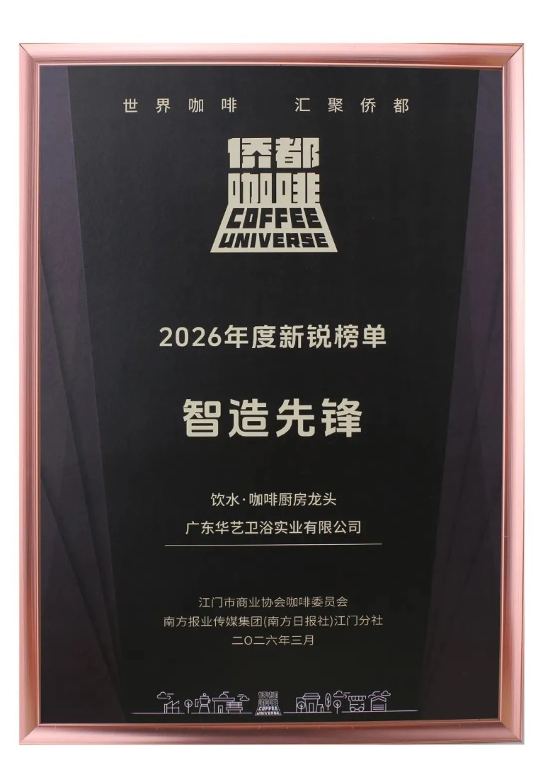 在近日揭晓的2026年度新锐榜单中,华艺卫浴自主研发创新的饮水·咖啡厨房龙头,从众多参评产品中脱颖而出,成功斩获 “智造先锋” 大奖。