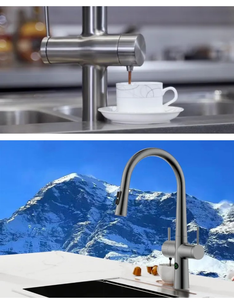 不仅如此,该厨房龙头还可以一键切换气泡水/花洒水等不同出水方式,一键出水的操作功能使得日常饮水更加便捷,咖啡厨房龙头将实用与创新融合,使厨房重塑美学新体验。
