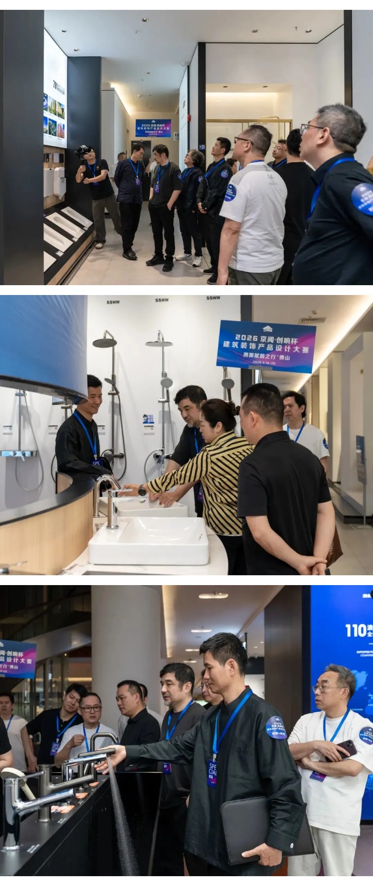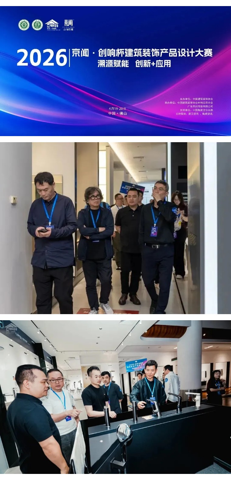 4 月19 日,由中国建筑装饰协会主办,广东京闻传媒承办的京闻・创响杯建筑装饰产品设计大赛溯源赋能专家评审团,正式走进浪鲸卫浴总部。中国建筑装饰协会材料应用分会秘书长梁宏瑀领衔,广东京闻传媒有限公司董事长梅宏成,集美组设计机构联合创始人、中国资深室内建筑师林学明等多位行业大咖到访交流。浪鲸卫浴品牌管理总监林学舟全程陪同接待,讲解品牌发展历程、产品研发理念及各项创新成果。