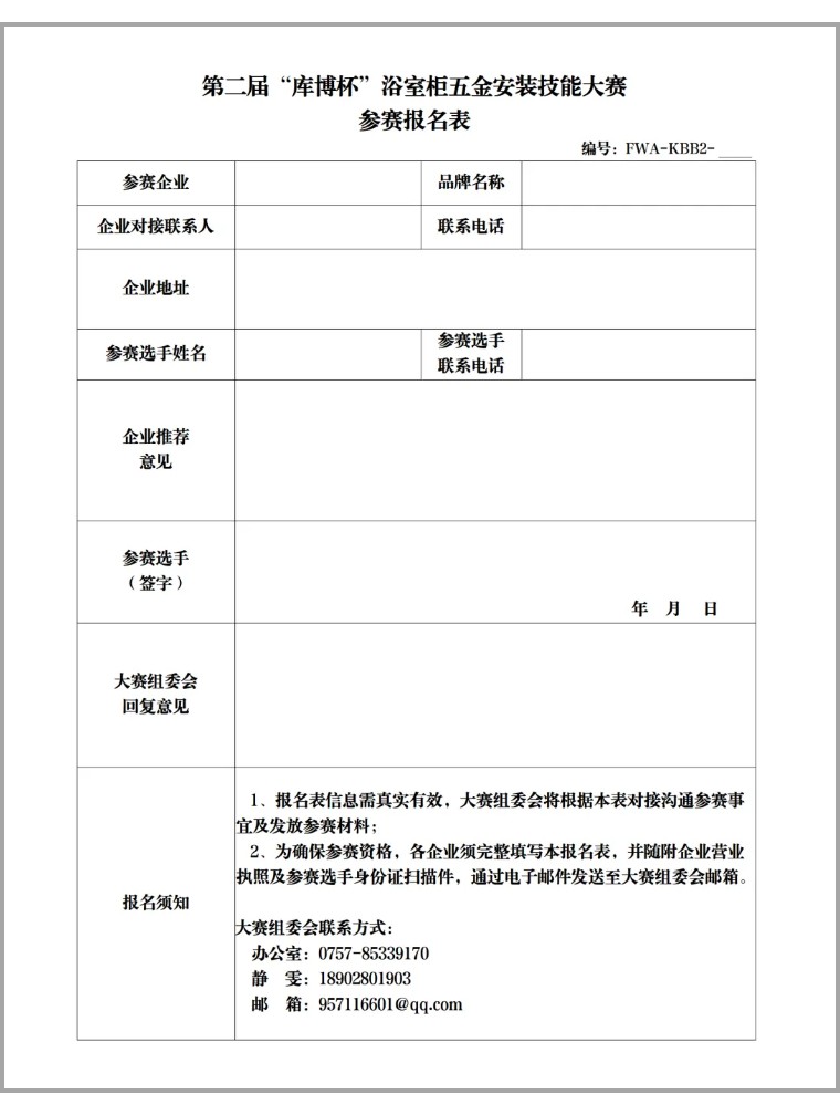 导读:第二届库博杯浴室柜五金安装技能大赛报名企业数4个月突破40家,佛山产区送样全面启动