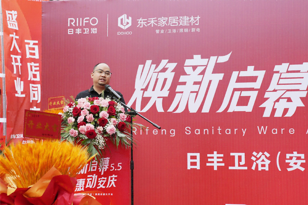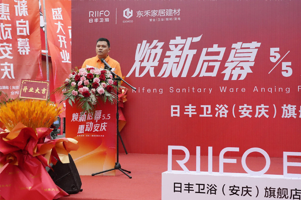 日丰卫浴华东大区经理陈煜对日丰卫浴安庆旗舰店开业表示热烈祝贺:日丰企业一直贯彻以客户为中心的服务理念,日丰卫浴旗舰店是一个对外展示用户交流的窗口,它的落成将为日丰卫浴在安庆地区的用户洞察、用户服务开启新篇章。