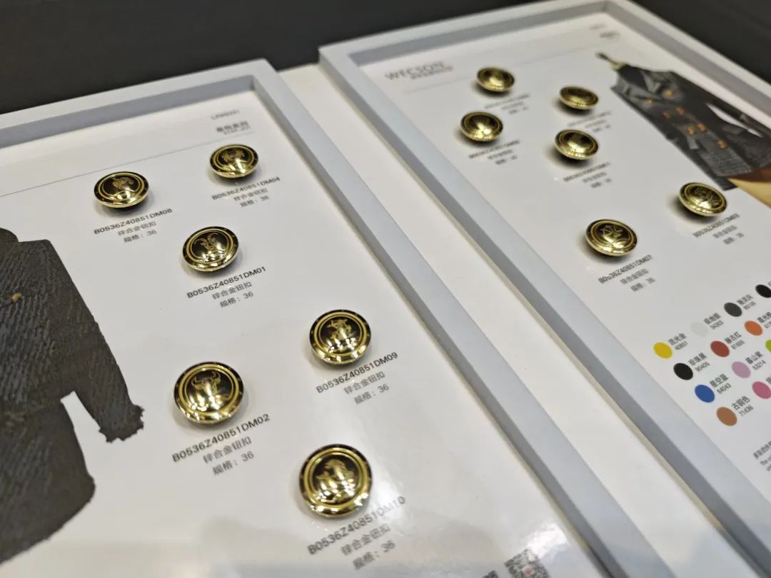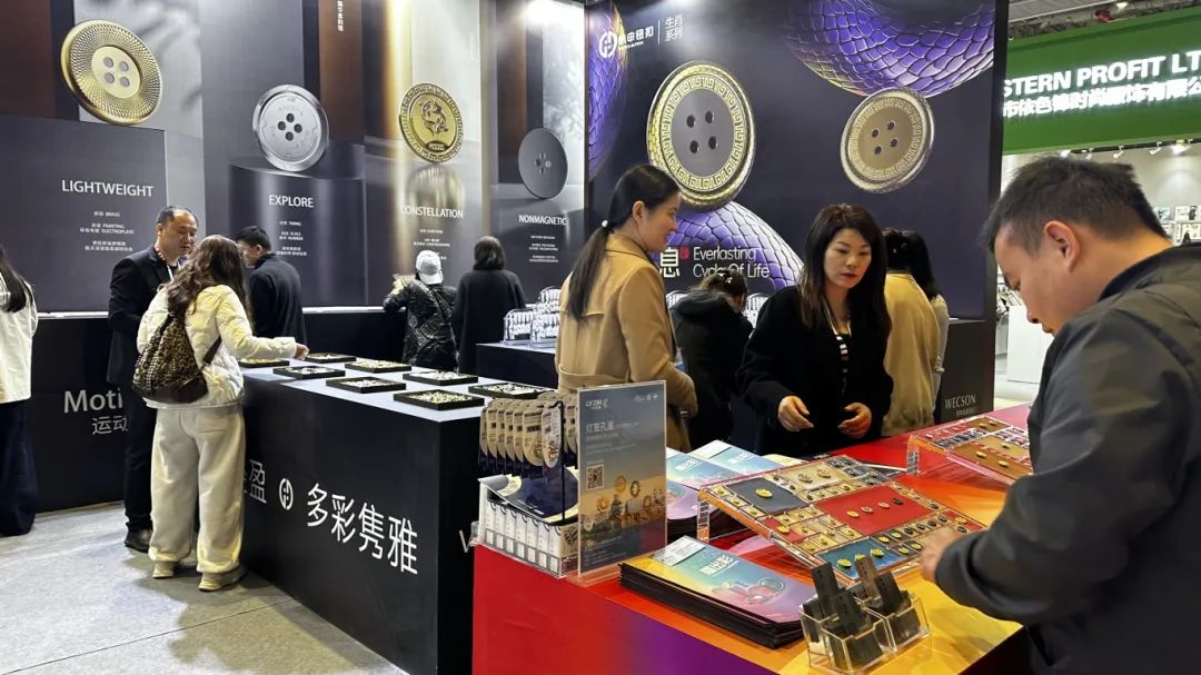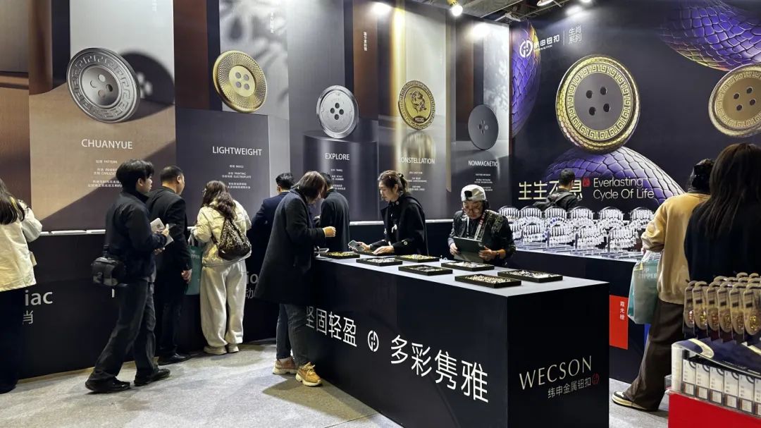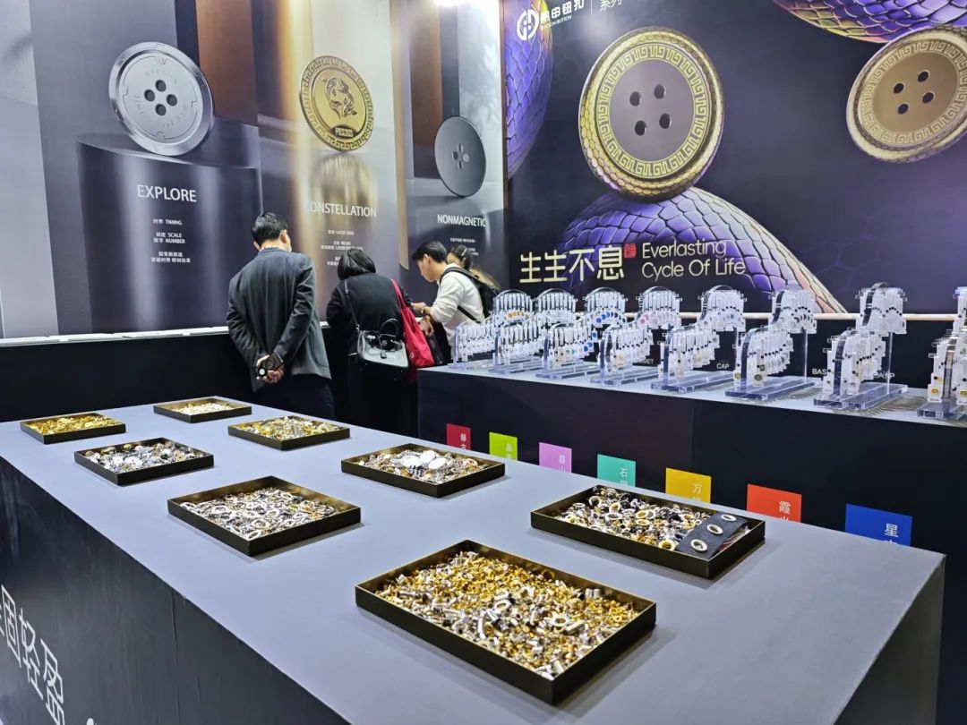 精心设计的展位布置和严谨专业的布光,突出了纬申钮扣的璀璨光泽。哑光、做旧、亮面、花纹等效果各耀其华,纬申钮扣的表面处理工艺经得起360°灯光检验。