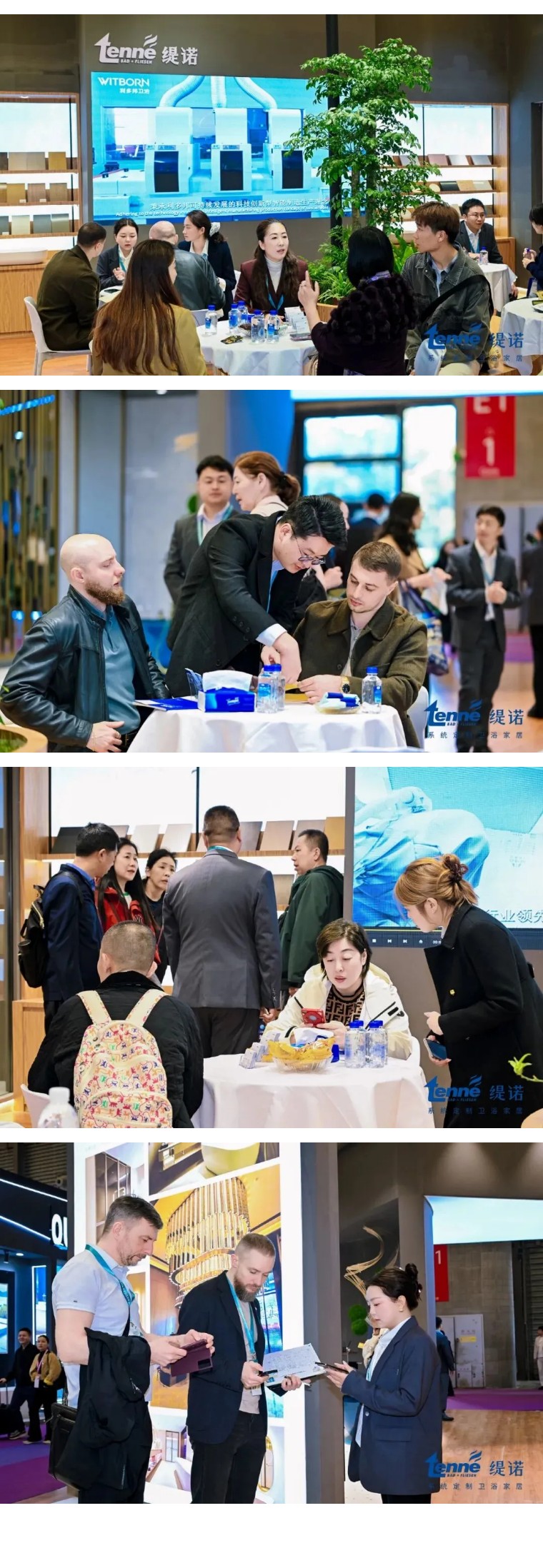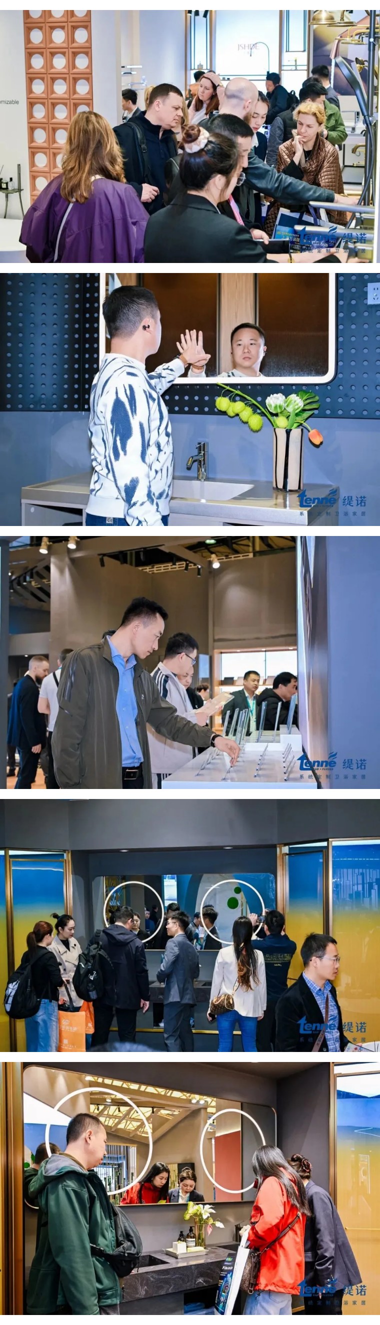 展馆内,TENNE缇诺的专业团队全程保持饱满的服务热情,为每一位到访者细致讲解产品特性、深度分享品牌系统定制卫浴家居解决方案的创新逻辑。咨询交流声、产品体验后的赞叹声交织涌动,全场氛围始终保持热烈有序,充分展现出专业受众对缇诺品牌理念与产品实力的高度认可。